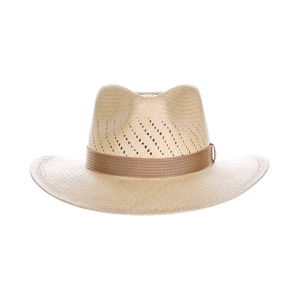 Casual charm radiates from this Western hat as it sits on your head with its airily crafted raffia straw and summery lightness. Over the sweeping curved brim, the plain straw hat in an authentic look surrounds itself with a narrow cord trim made of imitation leather and, adjustable in size, accompanies you on holiday, at a garden party, camping and at festivities with a perfect fit.
