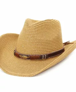 Channel your inner cowgirl or cowboy with this stylish straw sun hat. Designed for both men and women, this hat features alloy feather beads for added flair. Perfect for summer days at the beach or outdoor adventures, this Panama-inspired hat combines Western charm with sun protection for a fashionable and functional accessory